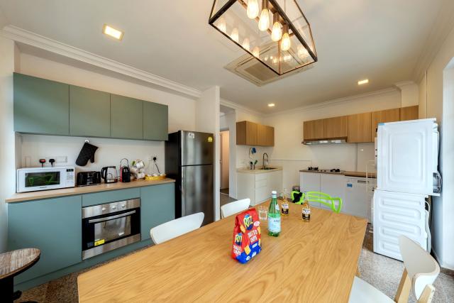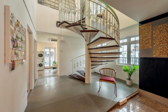 A large terrace with outdoor furniture sets the tone at this shophouse for rent at 12 Sixth Avenue, turning morning coffee into a ritual and extending living beyond interior walls. The co-living home spreads across multiple floors, connected by a staircase in the living room that doubles as a design feature. Step outside and convenience meets charm. Toast Box is practically next door for kaya toast on slow mornings, and Ming Teck Green Park offers green space just a short walk away. Baker & Cook brings artisan baked goods within easy reach, and Holland Village’s restaurants and bars are close enough to reach on foot. Known as an expat favourite, Holland Village blends hawker centres with trendy cafes and bars, offering variety for every taste. Sixth Avenue adds its own edge, with numerous food options clustered near the Bukit Timah side, giving residents immediate dining variety. The neighbourhood’s character is shaped by its proximity to GCB estates along First to Fifth Avenue. Landed homes and mature greenery create a serene, residential feel that is rare in central Singapore, and it’s a backdrop that makes outdoor living feel natural.