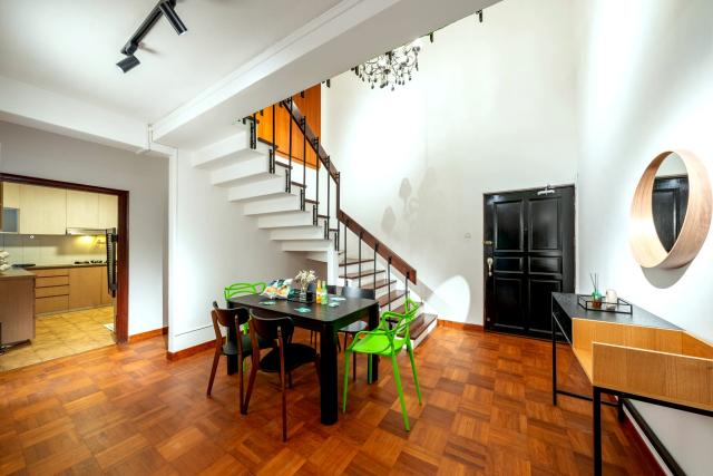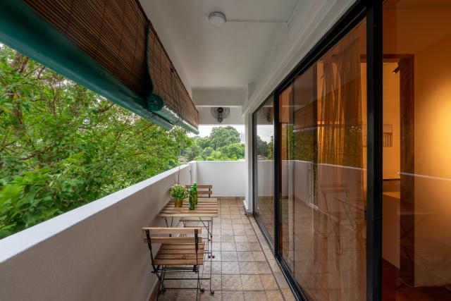 Green surroundings define the view from Holland Tower’s enclosed balcony, where this duplex condo for rent stretches across two floors in a property positioned between Holland Village and the Tanglin Dempsey corridor. The spacious layout creates natural separation between living and sleeping areas, and a wide terrace brings in natural light and views of lush trees. Dempsey Hill sits close by with its cafes, restaurants, and concept stores housed in converted military barracks, giving the area a dining and shopping scene that feels different from typical mall retail. Holland Village is also within reach for its bars, restaurants, and easygoing neighbourhood energy when you want something more casual. Botanic Gardens adds another layer of green space, making morning walks or weekend picnics simple without needing transport. Groceries are covered by Sheng Siong Hypermarket at Tanglin Halt, Cold Storage at Holland Village, and NTUC FairPrice, while Holland Piazza, The Star Vista, and Rochester Mall handle shopping needs.