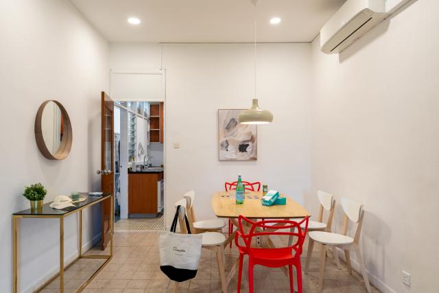 This newly renovated apartment on Gilstead Road places you in the heart of Novena, where residential calm meets central accessibility. Light pours through the spacious rooms of this rental home, creating an airy sanctuary that feels both generous and grounded. The neighborhood carries a distinctive character, anchored by its proximity to Singapore's largest healthcare complex, HealthCity Novena, yet softened by tree-lined avenues and a sense of community that comes with mature residential enclaves. A few steps away and you'll find yourself within reach of the famous hawker destination in Newton Food Centre, where the evening air fills with the smoky aroma of satay and the energy of shared meals under open skies. For your morning ritual, Craftsmen Coffee in nearby Goldhill Centre serves specialty brews and hearty brunch in a space that invites lingering conversations. United Square shopping mall brings family-friendly convenience with its Cold Storage supermarket, diverse dining from laksa to Japanese fare, and the ease of everyday errands. The neighborhood wraps around you with the kind of established comfort that makes daily life feel effortless, while Novena's central position means the broader city remains within reach.
