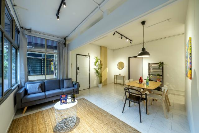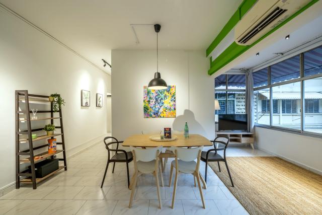Cove Oxley Mansion 3 is a spacious apartment in a retro walk-up building on the historic Oxley Road. Built in the 60s, it does not come with amenities (pool, gym), but this is well balanced by the charming aesthetic of a heritage building with interesting decor, colorful art and the convenience of a freshly renovated interior. Very airy and bright common space with wall to wall windows. Large smart TV, dishwasher and full kitchen appliances are included. The rooms are spacious and come with own work desks and wardrobes. Each of the four rooms is for one member only. Oxley Mansion 3 is extremely conveniently located; a three minute walk to Somerset MRT and Orchard Road, as well as a 10-minute walk to Robertson Quay packed with multiple restaurants and bars!